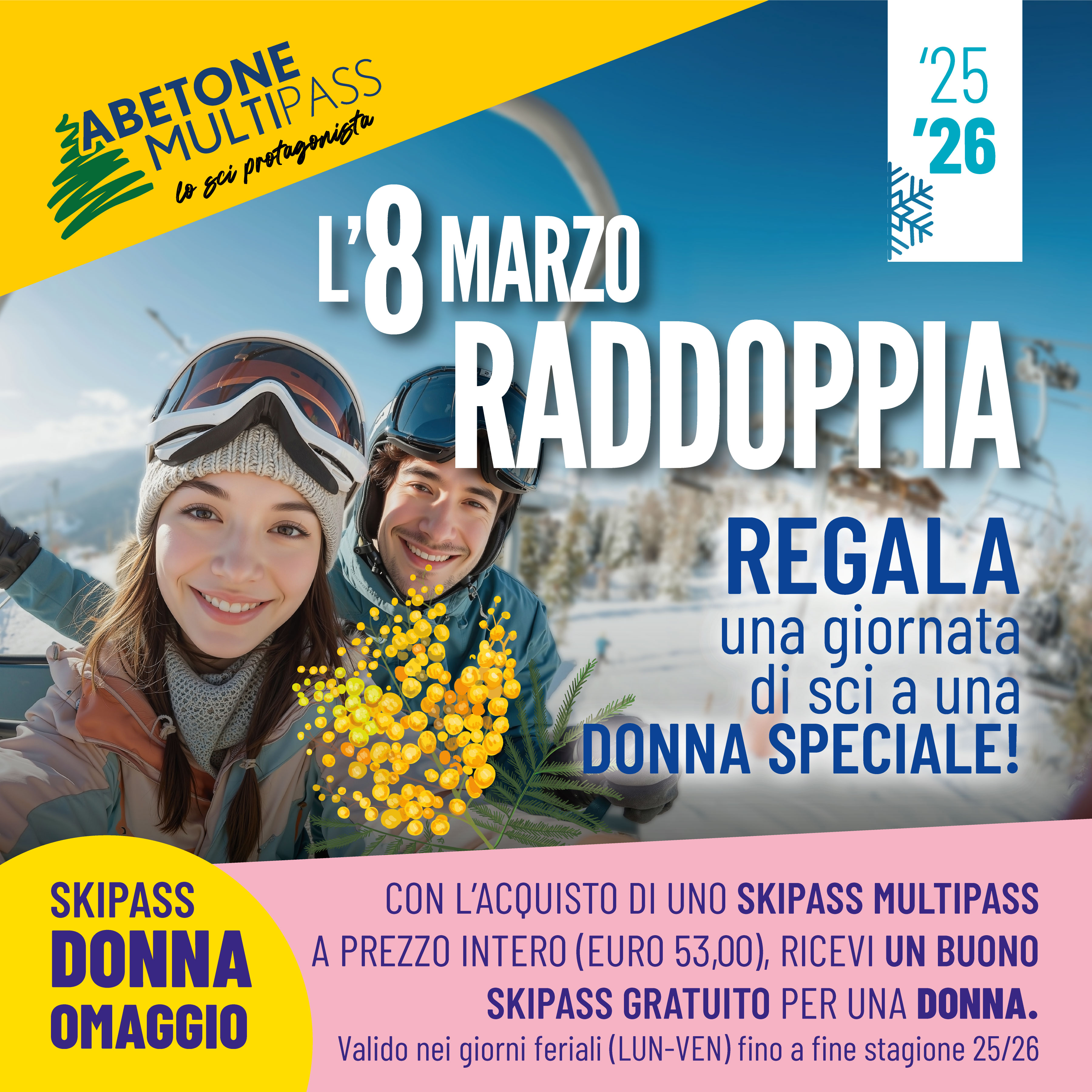 Il 28, 29 e 30 novembre SOLO ON LINE sul nostro sito alla sezione Shop on line, potrete acquistare a prezzi scontati giornalieri feriali e festivi, i carnet nominativi da 4 giorni e lo stagionale. Tutti i biglietti sono validi per l’inverno 2025/2026.