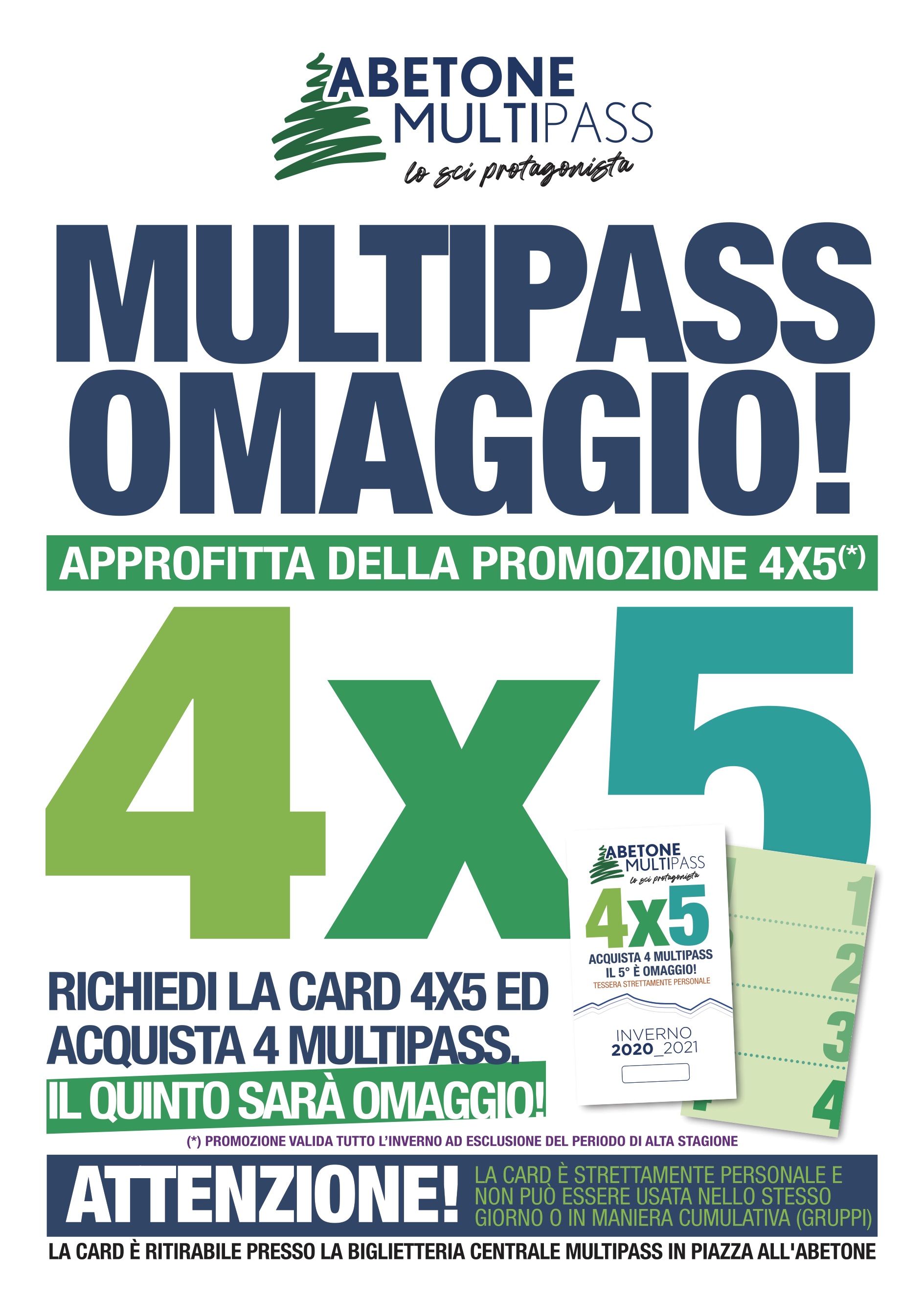 *Fino a 5 anni (nati dopo 01/01/2016) riduzione Baby, feriale o festivo Multipass a € 15.00, Campi scuola a € 9.00