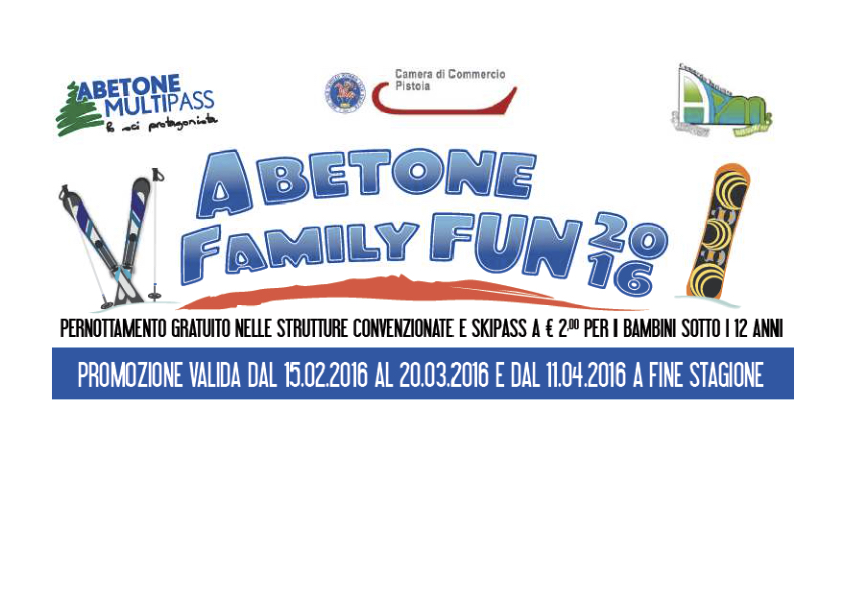 Under 12 soggiornano gratis nelle strutture convenzionate (www.abetoneapm.it) e sciano con 2 euro al giorno.